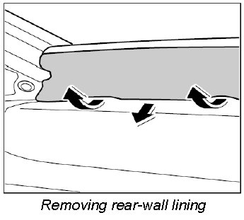 Hold rear-wall lining underneath at the sides and carefully pull it out of the clips in -direction of arrow-.