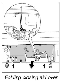 3.1. Fold closing aid support upwards -arrow-. Make sure that the support strut -inset- for the closing aid is engaged properly.