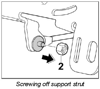 2. Screw off hexagon nut -2-, then remove the support strut on the closing aid.