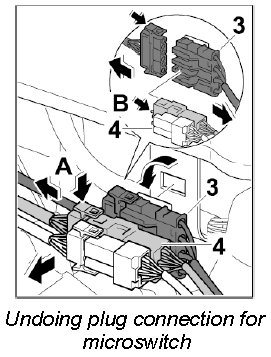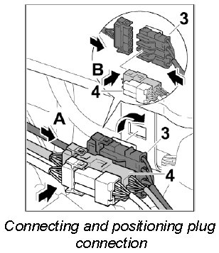 3.3. Open the lock -Arrow B- and pull connector -4- down off connector -3-.