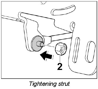 2. Engage strut on the closing aid and secure with the hexagon nut -2-. Tightening torque: 6 Nm (4.5 ftlb.)
