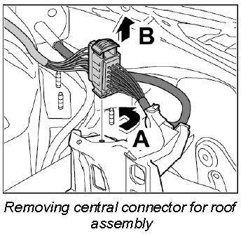 2. Disconnect power supply for the closing aid. To do this, disconnect the central connector for the Targa roof (30-pin).