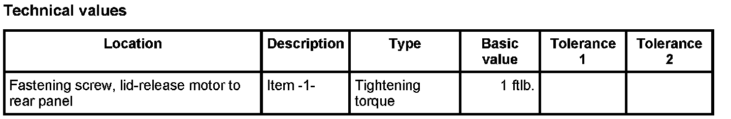 4. Secure lid-release motor with the two fastening screws -1-. Tightening torque: 1 ftlb.