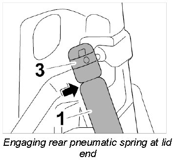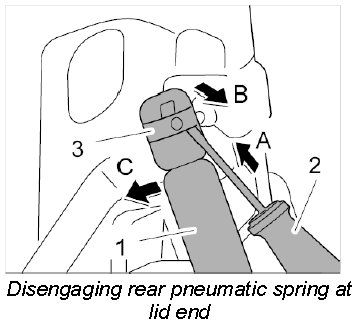Removing rear pneumatic spring at lid end