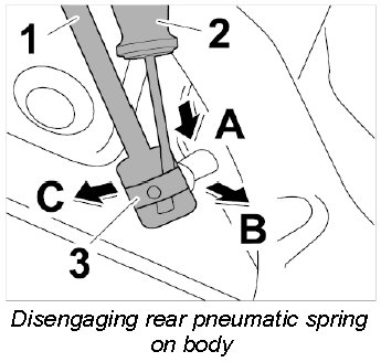 Removing rear pneumatic spring at the body