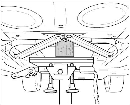 1.1. Raise the front axle with the spring strut at the left and right and position it.