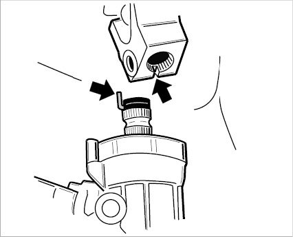 Press on coolant hose -2- until the spring clamp on the Henn coupling locks with an audible click.