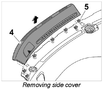 1. Insert plastic wedge under instrument panel cover (defroster cover) left and right -4- and lever out of sheetmetal clips -5-.