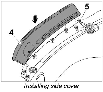 2. Clip cover for instrument panel (defroster cover) into place on left and right -4-.