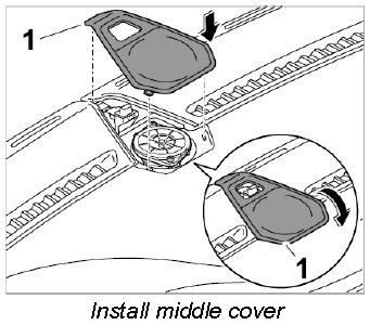 2. Position cover for centre dashboard (defroster cover) -1- and clip in -arrow-.