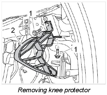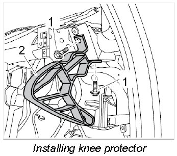 1. Unscrew fastening screws -1- and remove knee protector -2-.