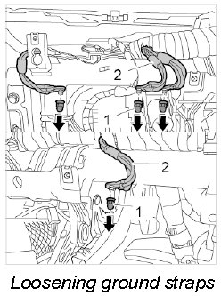 3. Undo fastening nuts -1- and place ground straps -2- to one side.