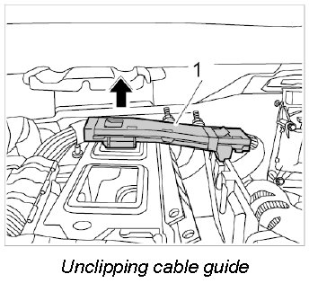 11. Unclip cable guide -1- on dashboard support from below -Inset-.