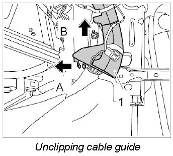 10. Unclip cable guide -1- on left of dashboard support using a screwdriver.