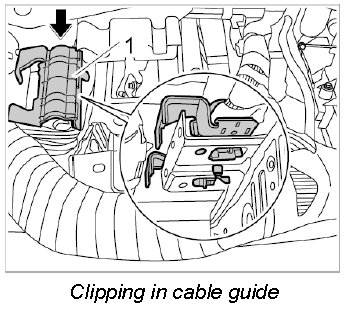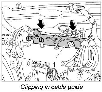 5. Clip in cable guide -1- at the right of the dashboard support.
