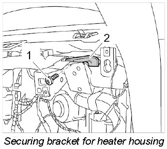 5. Unscrew fastening screw -1- on bracket for heater housing -2-.