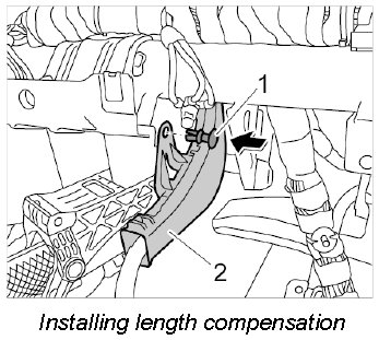 2. Push out fixing clip -1- and unclip length compensation -2-.