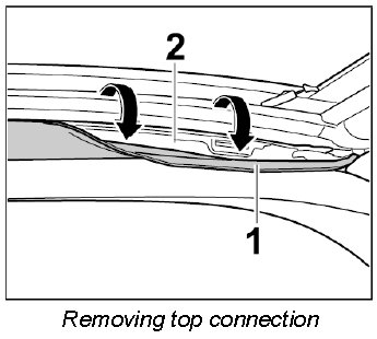3. Pull fabric lining -1- with top connection seal forward out of the guide in -direction of arrow-.