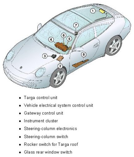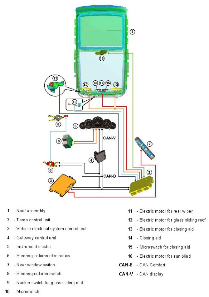 The position of the glass sliding roof is detected via a Hall sensor on the drive motor and via a microswitch for the end position "closed".