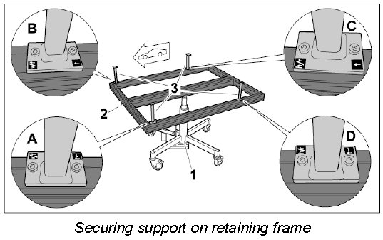 1.2. Support 9695/1 -3- must be secured to the retaining frame 9695 -2- at the positions shown using fastening screws and inlay nuts.