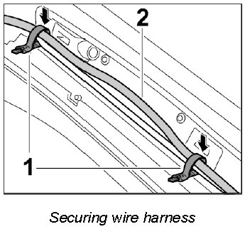 5. Secure wire harness -2- with tie-wraps -1-.