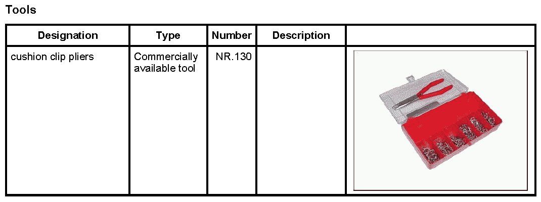 1. Position piping -2- for cover for middle backrest and padding -4- on the plastic frame -3-. Use the cushion clip pliers NR.130 and the cushion clips -1- to connect the cover strips and the plastic frame -3-.