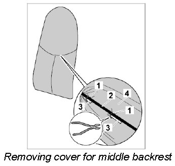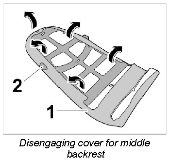 1. Disengage cover for middle backrest -1- out of the plastic frame -2- all the way round.