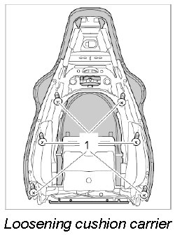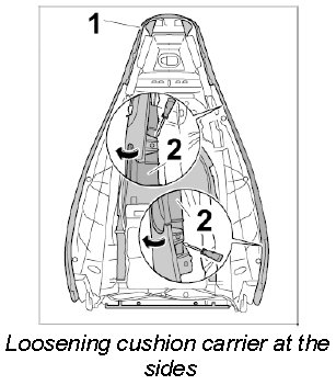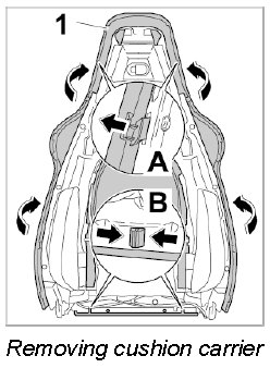 6. Press cushion carrier -1- outward slightly close to the backrest release and remove it.