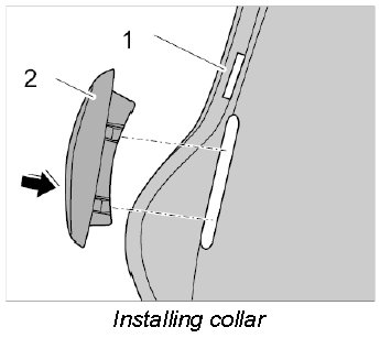 3. Position collar -2- on the cushion carrier -1- and press in until it clicks into place.