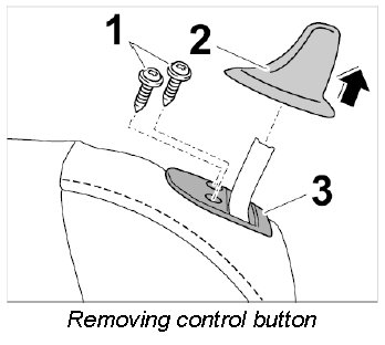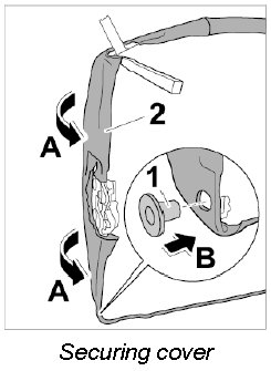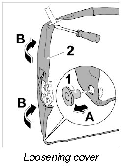 5. Press out cover for backrest -2- at the sides with a screwdriver -arrows B-.