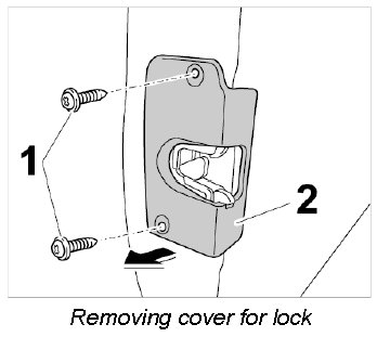 3. Unscrew fastening screws -1- and remove cover for lock -2-.
