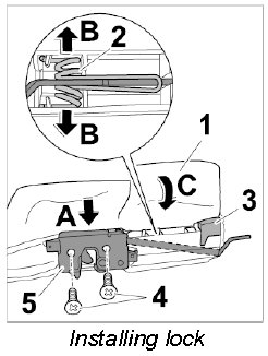 3. Press in reset spring -2- until it engages -arrows B- and check lever function.