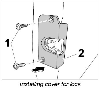 6. Position cover for lock -2- and screw in the fastening screws -1-.