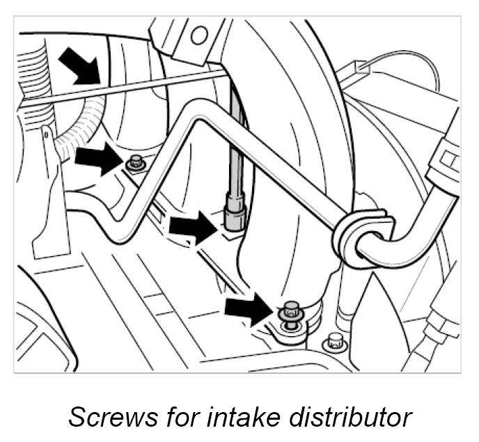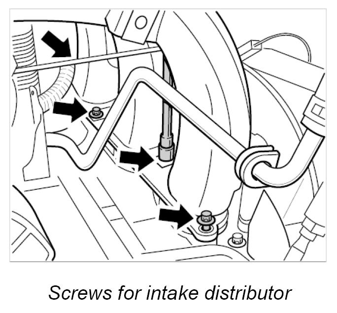 INFORMATION: If necessary, to ease installation of the intake distributor, insert the rear fastening screw in its bore in the intake distributor before commencing installation.