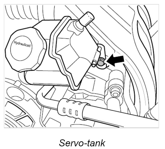 15. Check sealing rings on servo-tank and replace if necessary. Fit servo-tank by carefully inserting the tank into the opening of the servo pump and fastening the bayonet lock in the clockwise direction. Fit fastening screw of servo-tank to intake distributor - Tightening torque: 7.5 ftlb. Fill servo-tank with Pentosin fluid and check oil level.