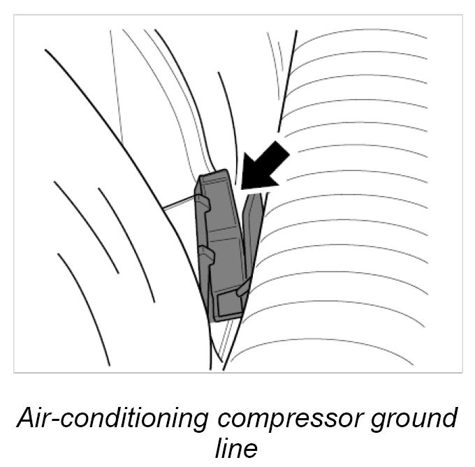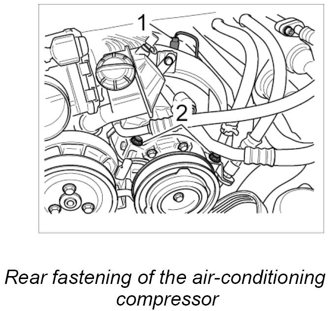 6. Lift out the air-conditioning compressor with the leads connected and lay to one side on a protective support. Secure additionally with a tie-wrap.