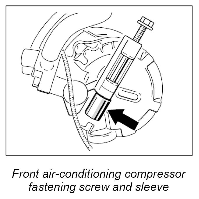 2. Detach air-conditioning compressor without disconnecting the air-conditioning lines.