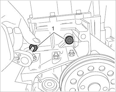 4. Screw off screw sleeves for the engine support on the engine/transmission flange and remove support.