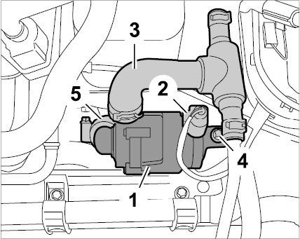 Fit coolant hose -3- to top of additional coolant pump and secure with the spring band clamp.