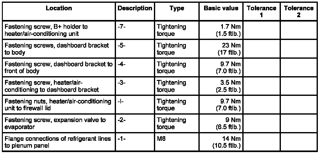 11. Push dashboard bracket forwards while lifting the heater/air-conditioning unit and taking care that no electric lines get trapped.