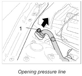 2. Unscrew fastening screw -1- for refrigerant line -C- and open the pressure line.