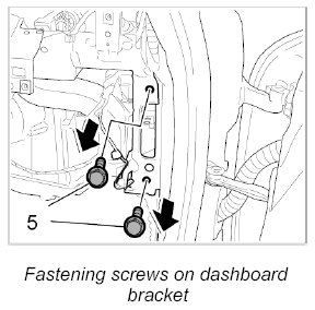 12. Screw down dashboard bracket with the two fastening screws -5-.