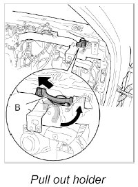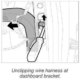 8. Unclip holder for electric harness with a screwdriver from right side of dashboard bracket.