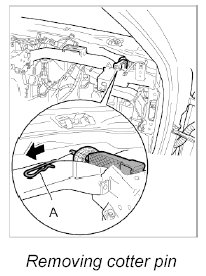 10. Pull out cotter pin -A- for holder of the heater/air-conditioning unit.