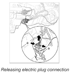 5. Connect upper electric plug connection at heater/air-conditioning unit until it is felt to engage.