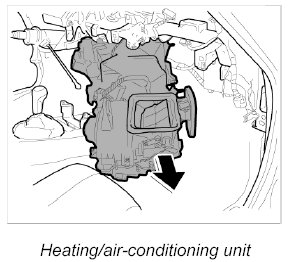 19. Remove heater/air-conditioning unit from passenger compartment via passenger's door.