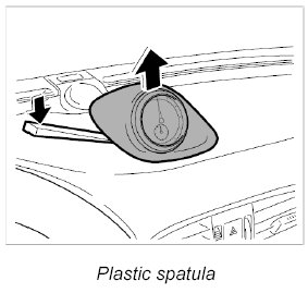 1. Insert a plastic spatula between the dashboard and the stopwatch. Lift up the stopwatch until its four clips unclip from the dashboard.