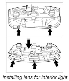 2. Press interior light down until the three locking lugs click into place in the lens.