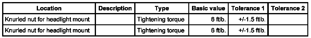- Tightening torque: 6 ftlb. ± 1.5 ftlb.