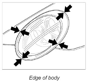 The headlight cover lens should lie approximately 2 mm below the body edge.